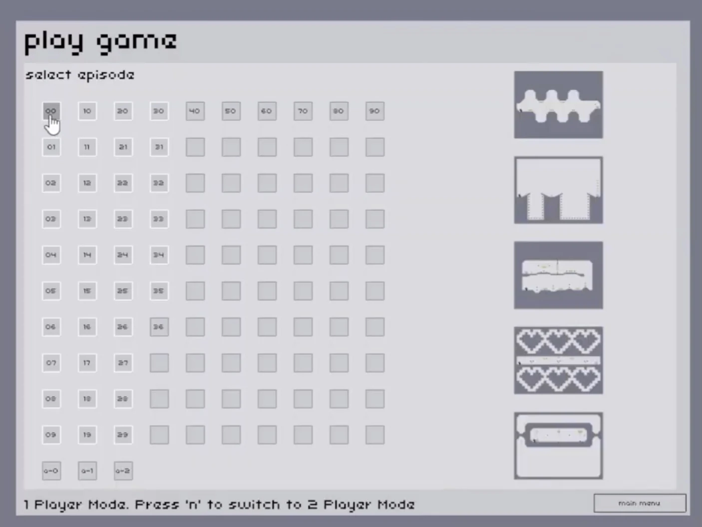 Episodes on the select screen are numbered and organized in a grid. The first row of episodes in every game are unlocked by default. The player progresses down the column, below a completed episode, until they reach the end, where they can start another column from the first row of episodes.